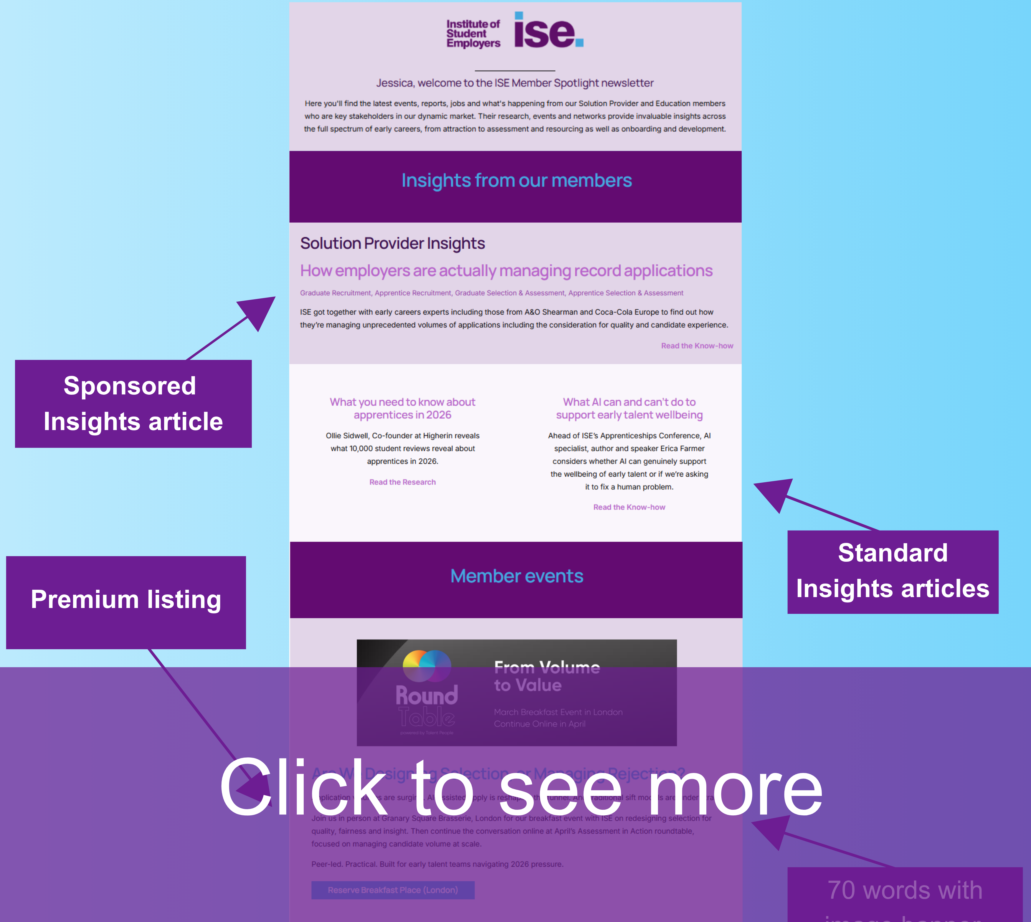 ISE Member Spotlight is a member-content led newsletter sent to employers and educators every other Thursday. Currently we have over 2700 subscribers and an average open rate of 28%.